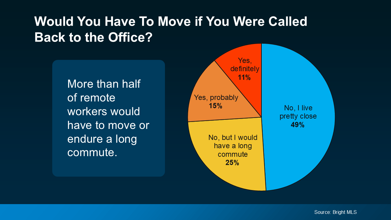 And according to data from Bright MLS, more than half of workers surveyed would have to rethink where they live or deal with long drive times if their job enforced a return-to-office policy (see chart below):
