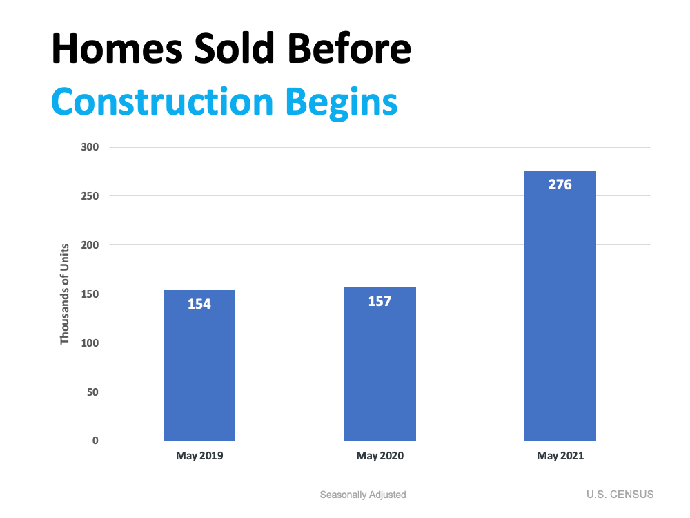 This insight that there’s also an uptick in single-family homes permitted serves as an additional sign that more new homes lie ahead. It’s important to realize that the construction doesn’t have to start on these homes before you may be able to purchase one. According to the Monthly New Residential Sales report from the U.S. Census Bureau, many new homes are selling before construction even begins (see graph below):