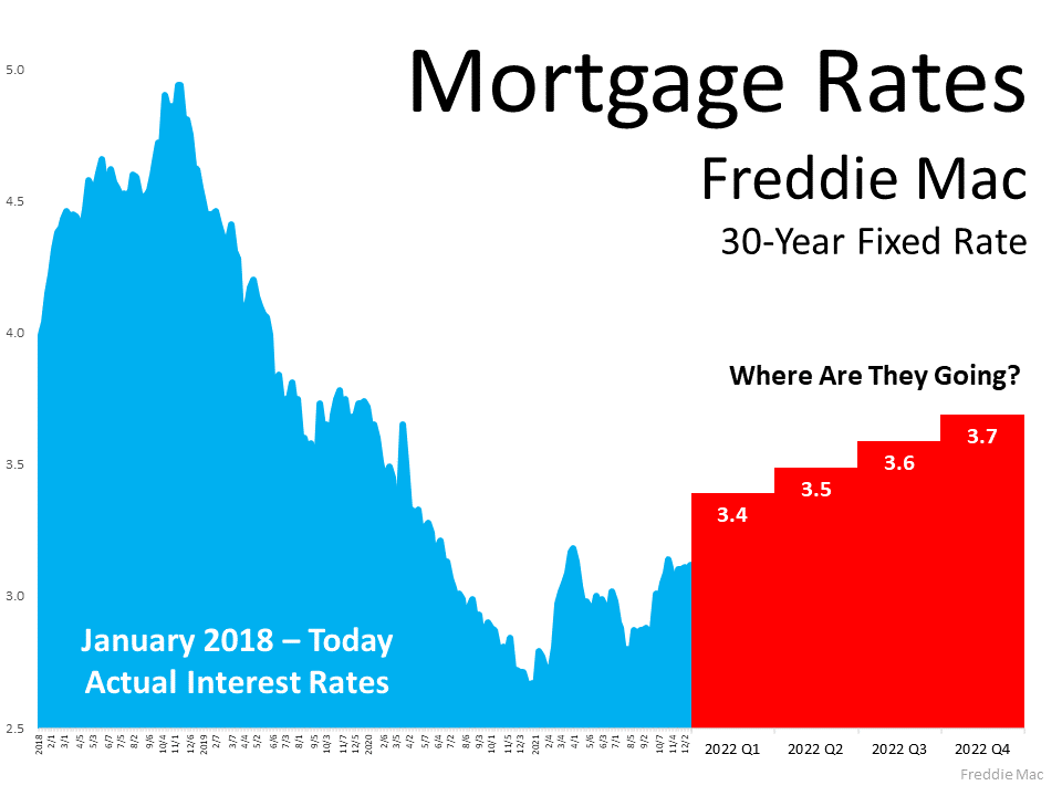 As a buyer, your interest rate directly impacts how much you’ll pay on your monthly mortgage when you purchase a home. Rates are beginning to rise, and experts forecast they’ll continue going up in 2022 (see graph below):