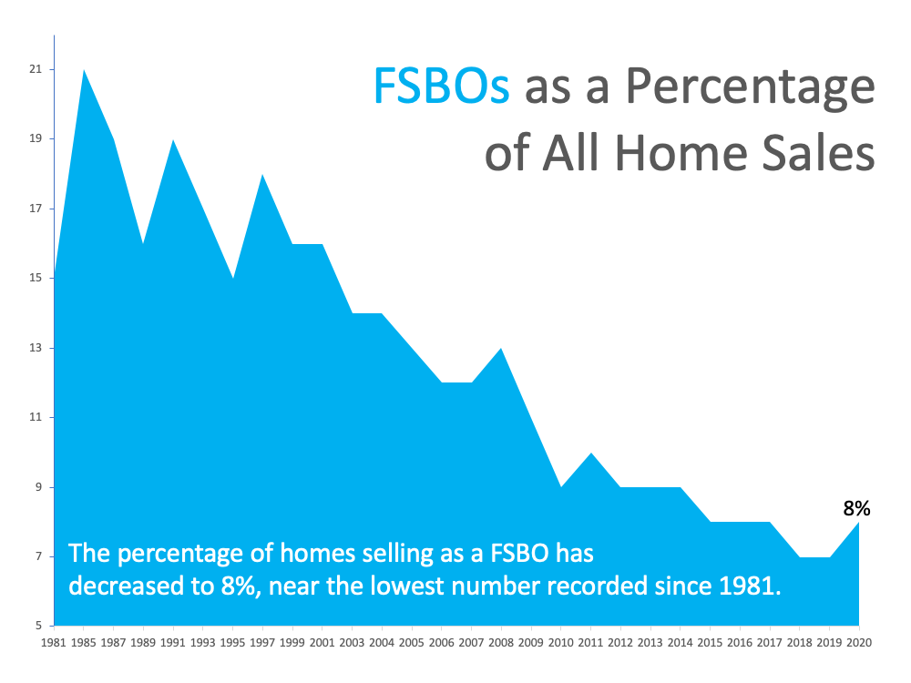 Selling a house is a time-consuming process – especially if you decide to do it on your own, known as a For Sale By Owner (FSBO). From conducting market research to reviewing legal documents, handling negotiations, and more, it’s an involved and highly detailed process that requires a lot of expertise to navigate effectively. That’s one of the reasons why the percentage of people selling their own house has declined from 19% to 8% (See graph below):