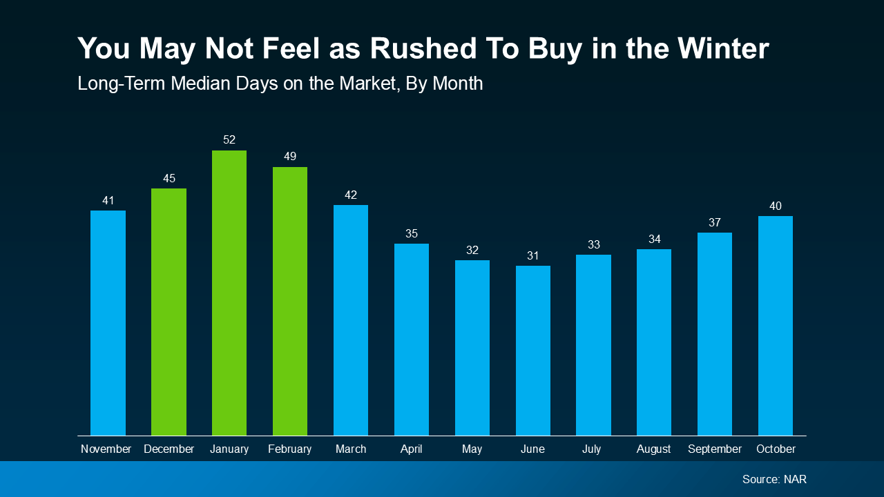 This is partly because fewer buyers are active at this time of year – and that decrease in buyer competition means the houses that are on the market aren’t going to be snatched up as quickly. So, if you decide to buy a home in the next couple of months, you’ll likely have more time to consider your options and negotiate a deal without feeling as pressured.