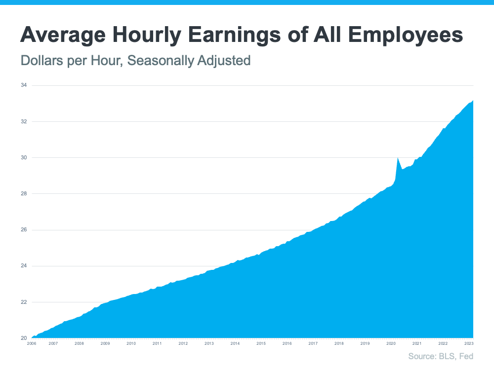 The most positive factor in affordability right now is rising income. The graph below uses data from the Bureau of Labor Statistics (BLS) to show how wages have grown over time: