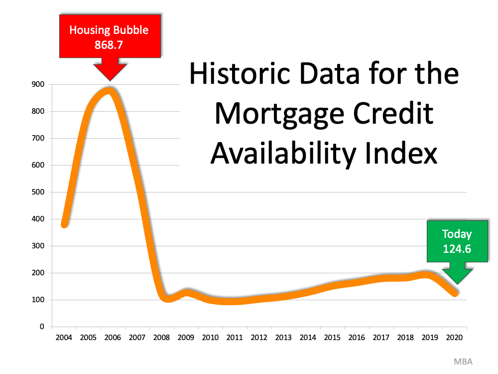 Basically, the index determines how easy it is to get a mortgage. The higher the index, the more available mortgage credit becomes. Here’s a graph of the MCAI dating back to 2004, when the data first became available:There’s No Reason To Panic Over Today's Lending Standards | Simplifying The MarketAs we can see, the index stood at about 400 in 2004. Mortgage credit became more available as the housing market heated up, and then the index passed 850 in 2006. When the real estate market crashed, so did the MCAI (to below 100) as mortgage money became almost impossible to secure. Thankfully, lending standards have eased somewhat since. The index, however, is still below 150, which is about one-sixth of what it was in 2006.