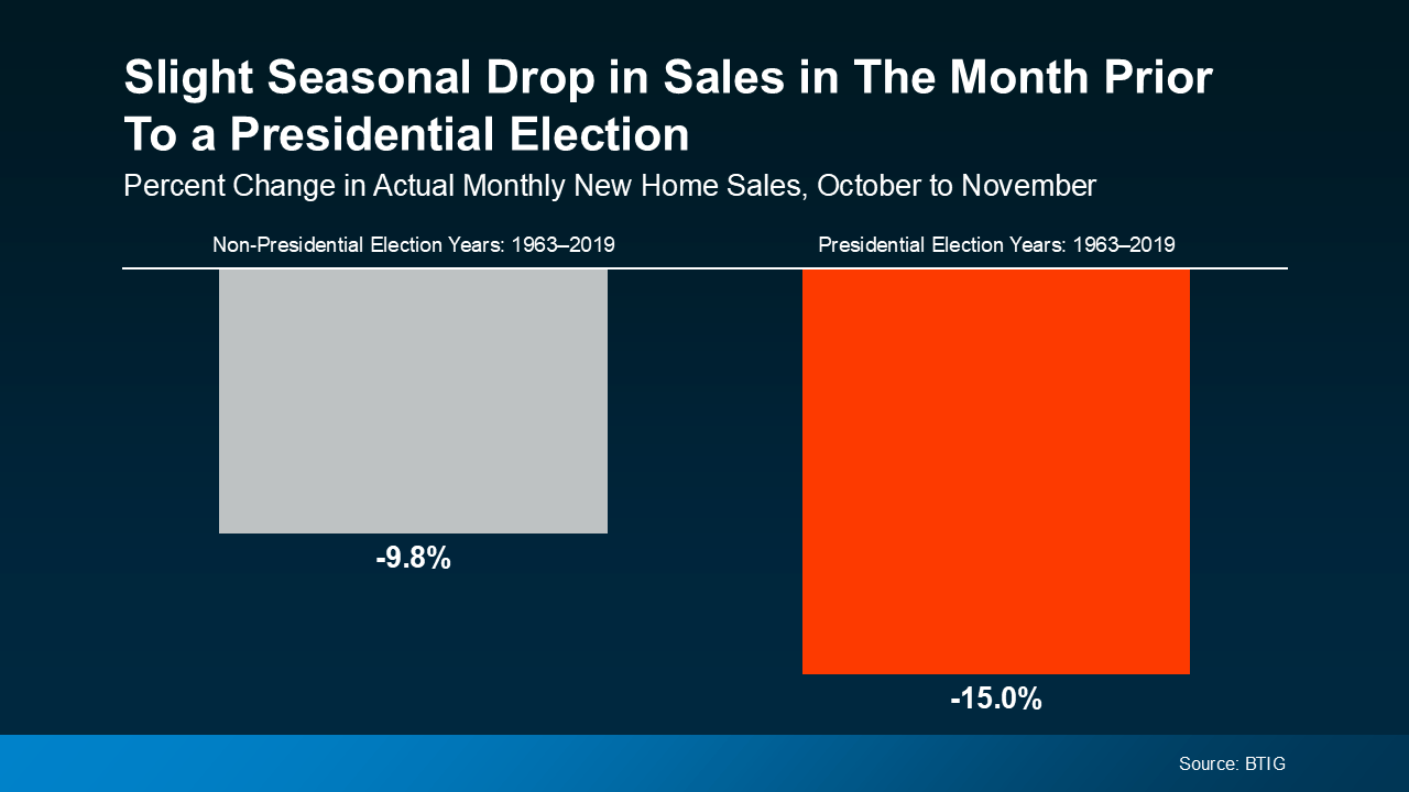 In the month leading up to a Presidential election, from October to November, there’s typically a slight slowdown in home sales (see graph below):
